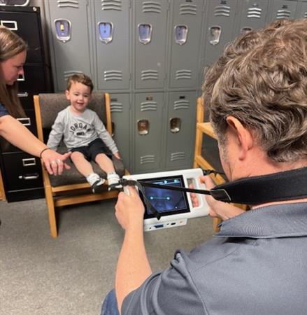 Lion Doug Wright, first time KidSight screening at the Auraria Early Learning Center. Lion Steve Krebs was the trainer. We need screeners. Vision screening events are weekday mornings, generally from 9 to noon. It is easy to do after one or two training sessions. This is a hands-on service. When you screen a kid and they are referred, you know you made a difference in the child's life.